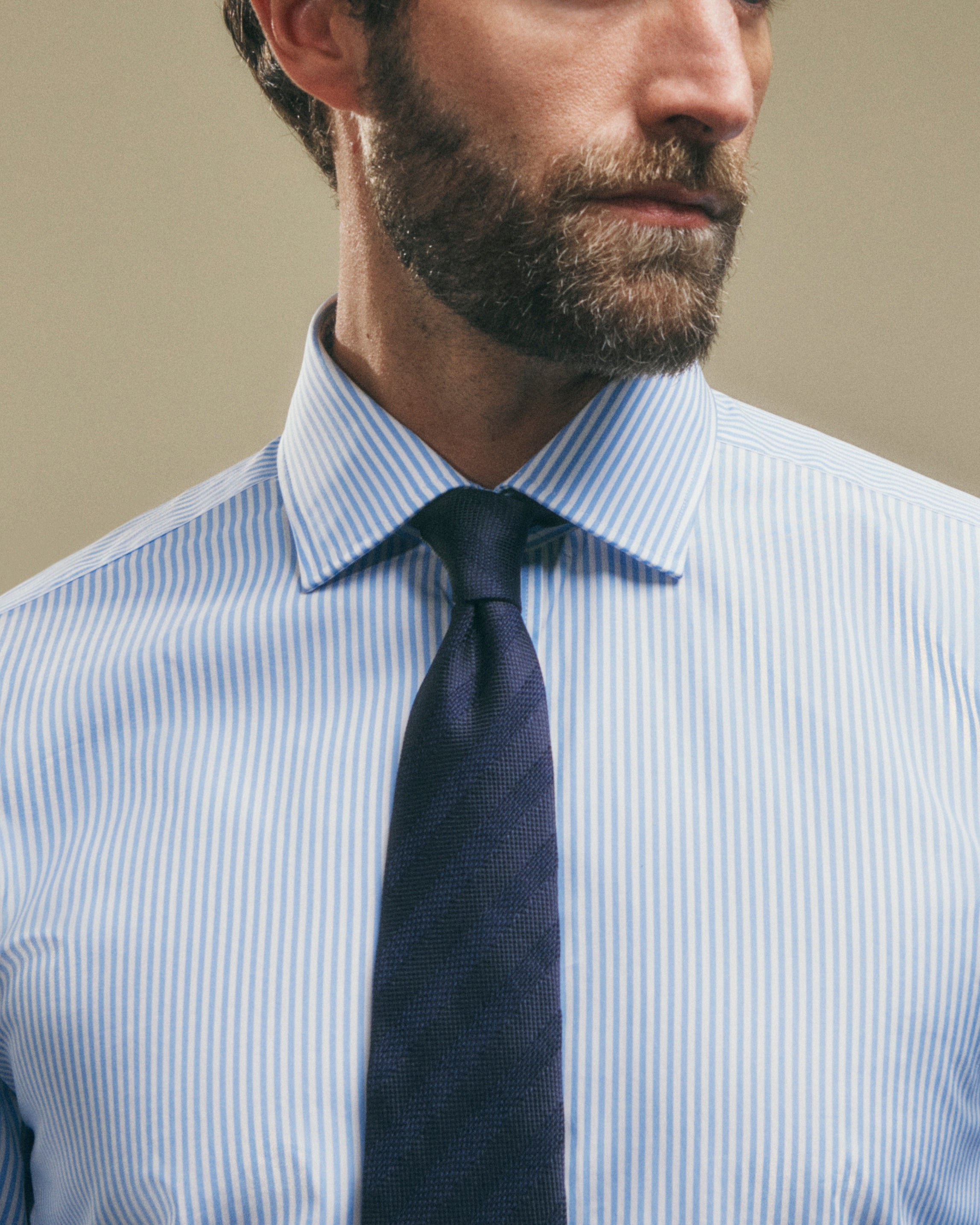It’s the simplest test of a Thomas Pink shirt. Where stripes meet, they match. If patterns don’t match the overall effect can appear unbalanced.